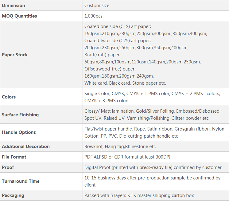 自定义您想要的任何尺寸白色礼品袋,由250GSM涂层的艺术品制成,用纸卡底部的袋子,以便强度,